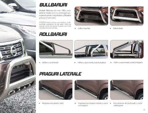 f Prag lateral inox placat cu tablă f Prag lateral inox din ţeavă rotundă, cu benzi f Prag lateral inox din ţeavă ovală, cu benzi
