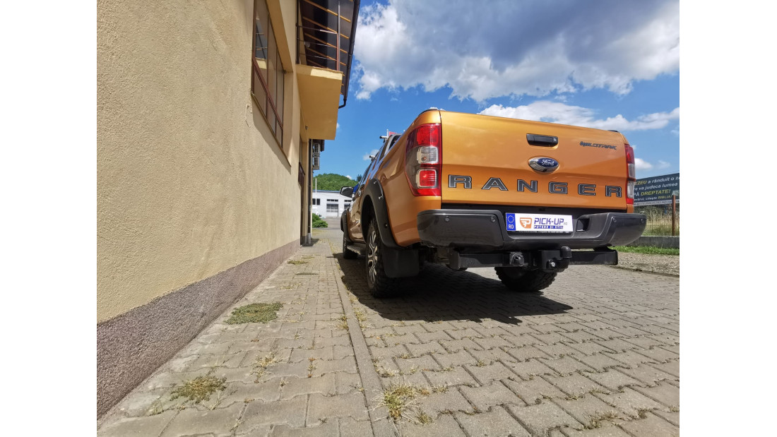 On August 11, 2021, a Ford Ranger, model year 2020, was equipped with overfenders, winch, winch plate, hood guard, and window visors. The solution was chosen for off-road styling and protection.