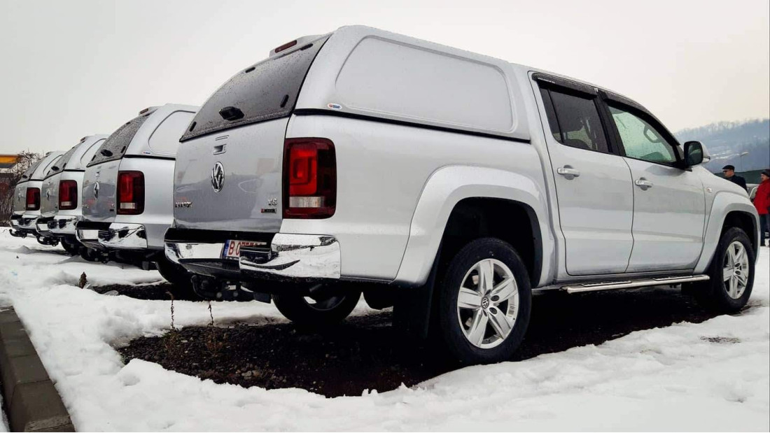 On January 15, 2020, a Volkswagen Amarok, model year 2018, was equipped with a canopy, side steps, window visors, bullbar, and spot lights. The solution was chosen for full protection and off-road readiness.