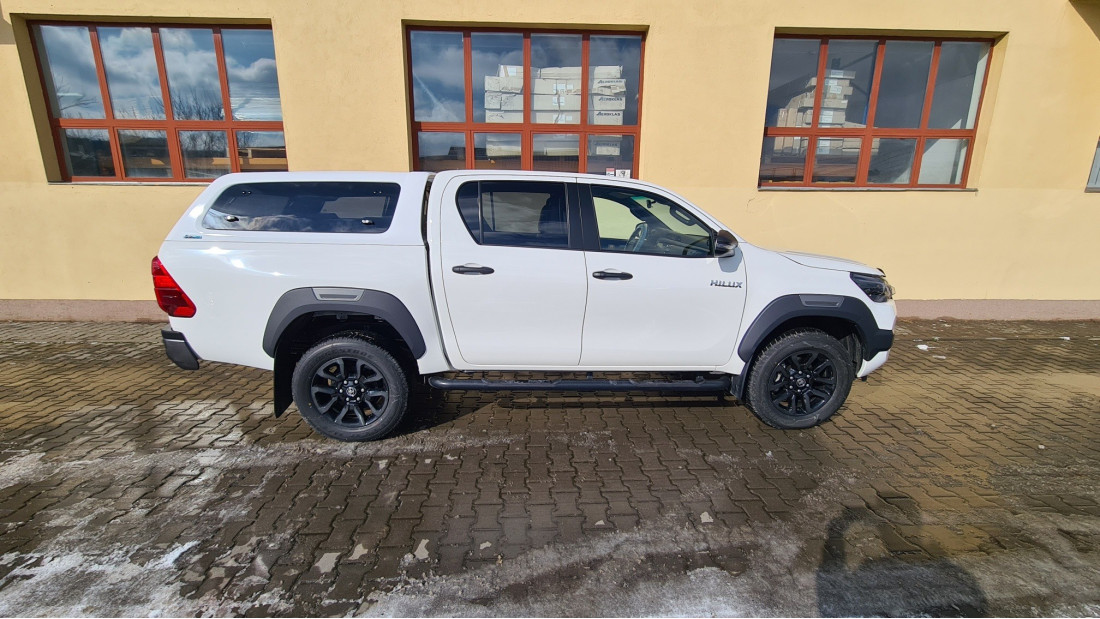On February 15, 2021, a Toyota Hilux, model year 2020, was equipped with a canopy and bed liner. The solution was chosen for protection and organized storage.